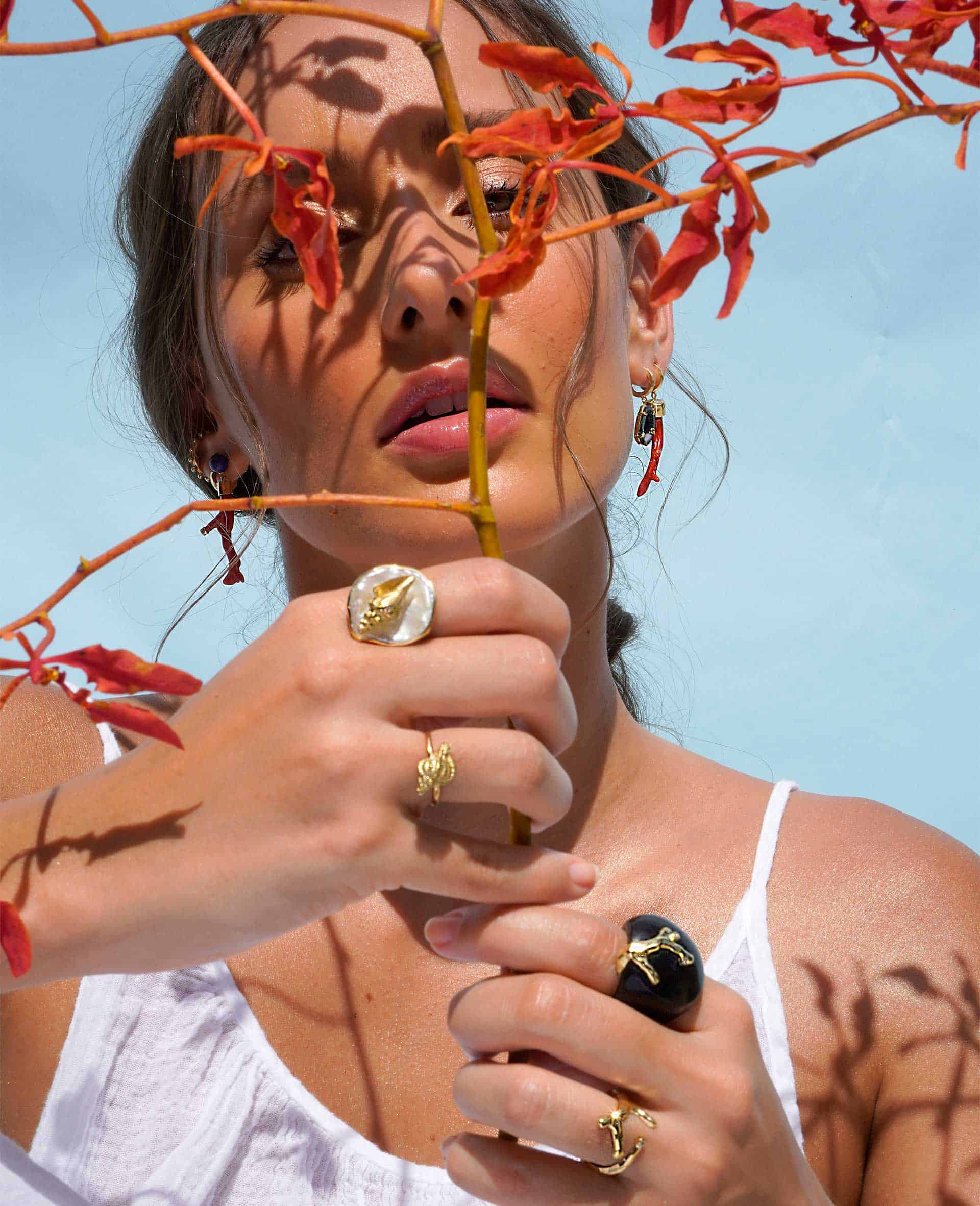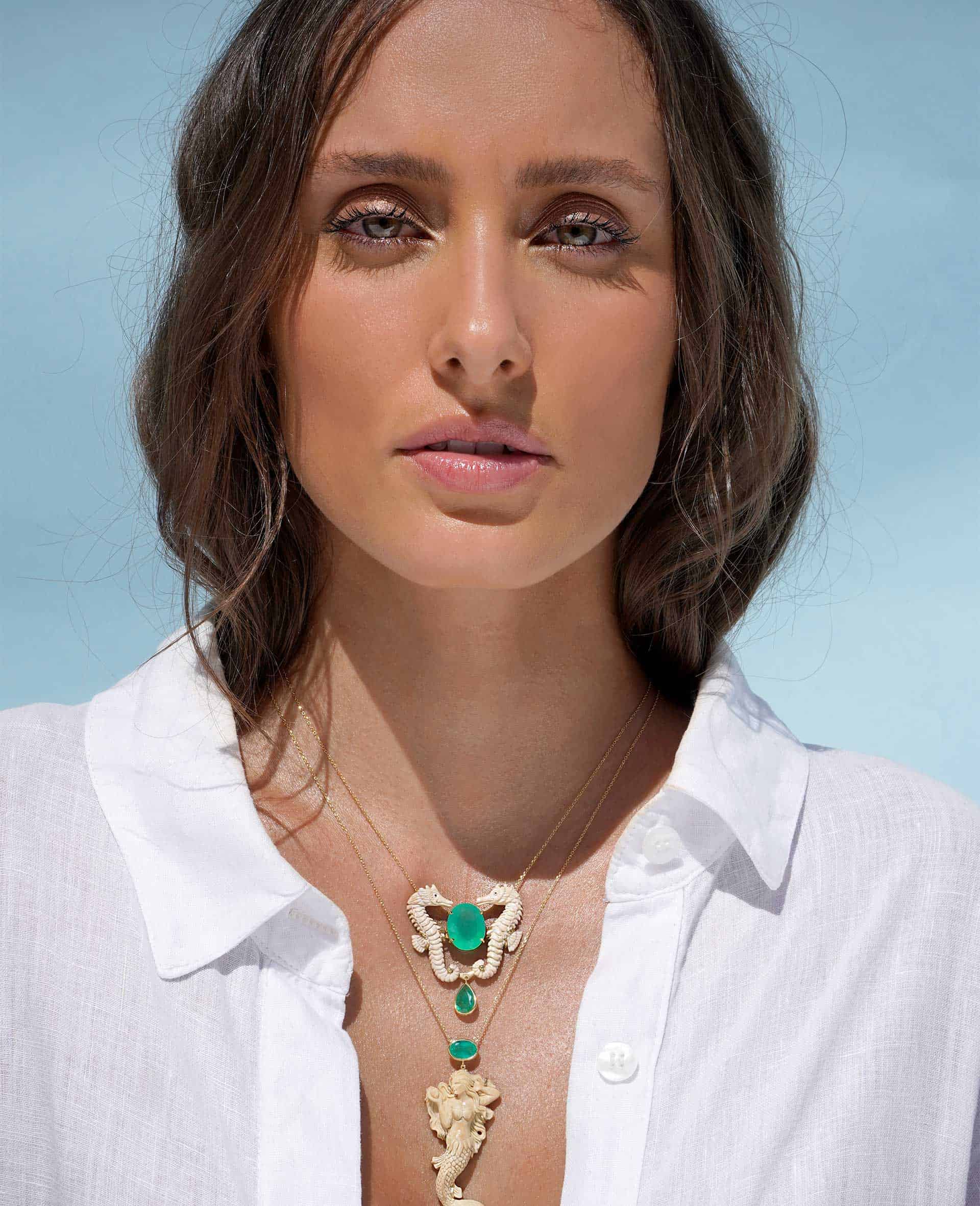 The pieces reminisce the smell of summer, the colors of the sea and brings the nostalgia of objects from the ocean, like corals and shells, becoming the protagonists of the collection.