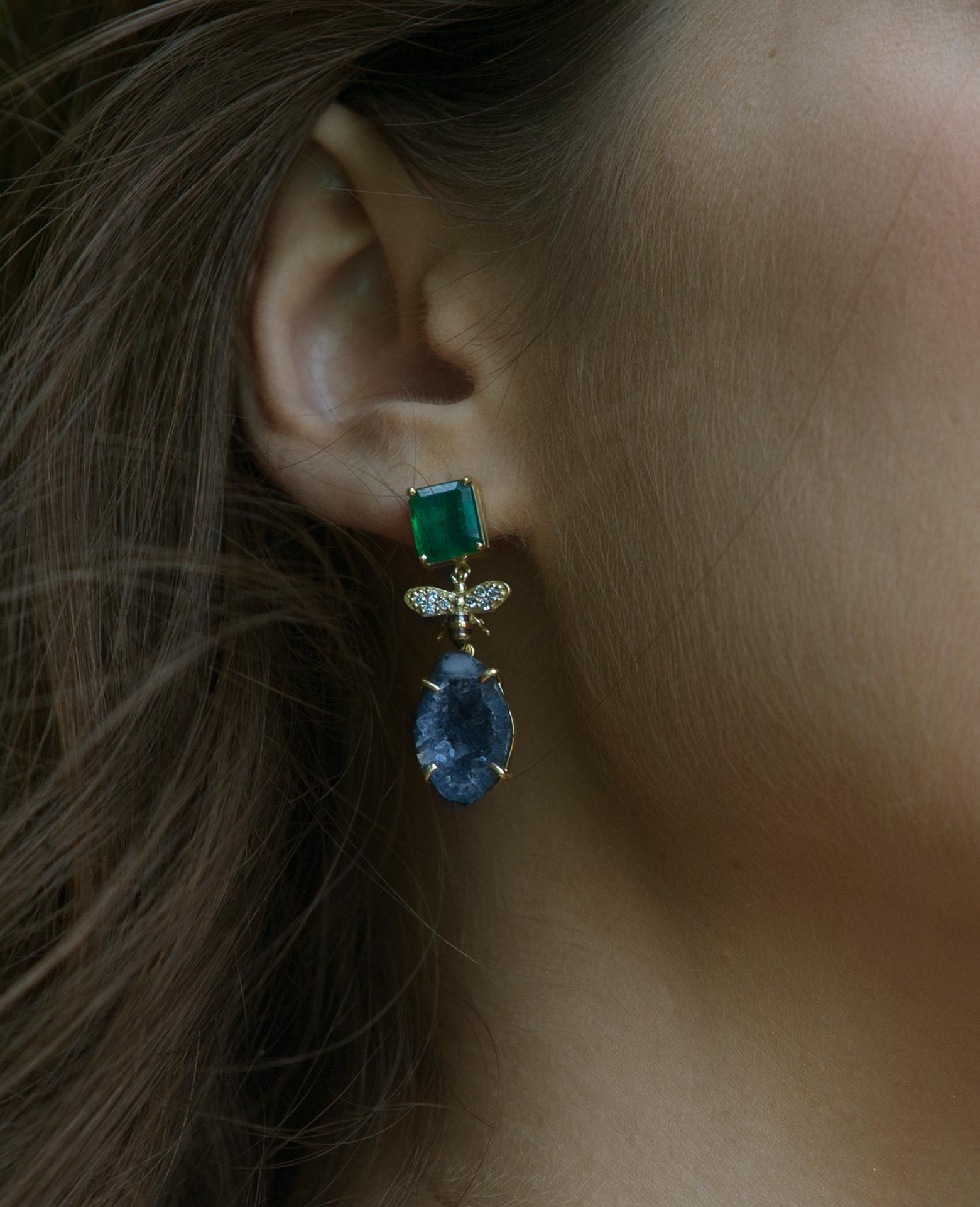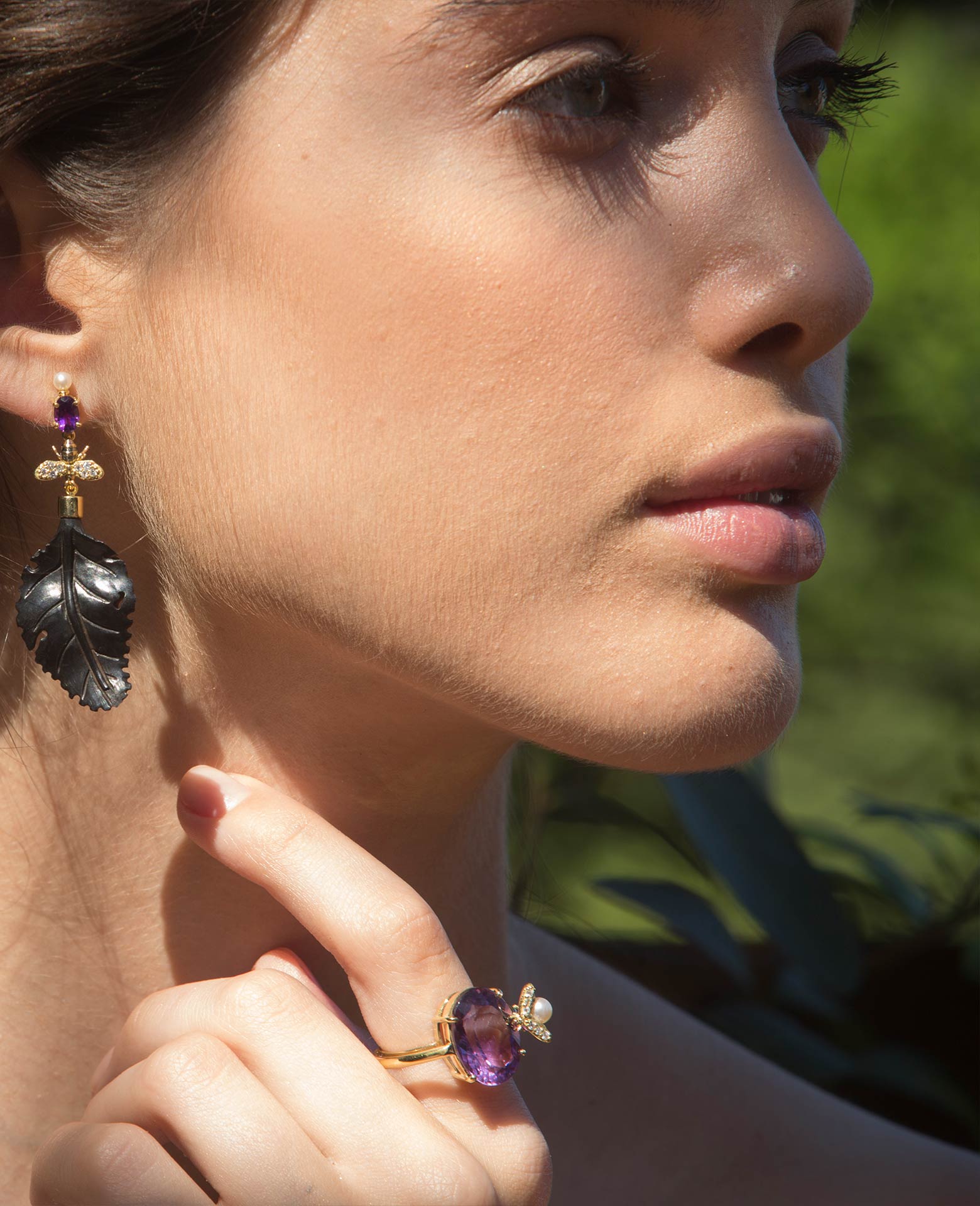A garden in which bees spread love, inspired this collection that’s full of details and symbolisms. Exploring the natural beauty of crystals in the form of geodes and unique pieces carved to compose flowers, leaves and butterflies.